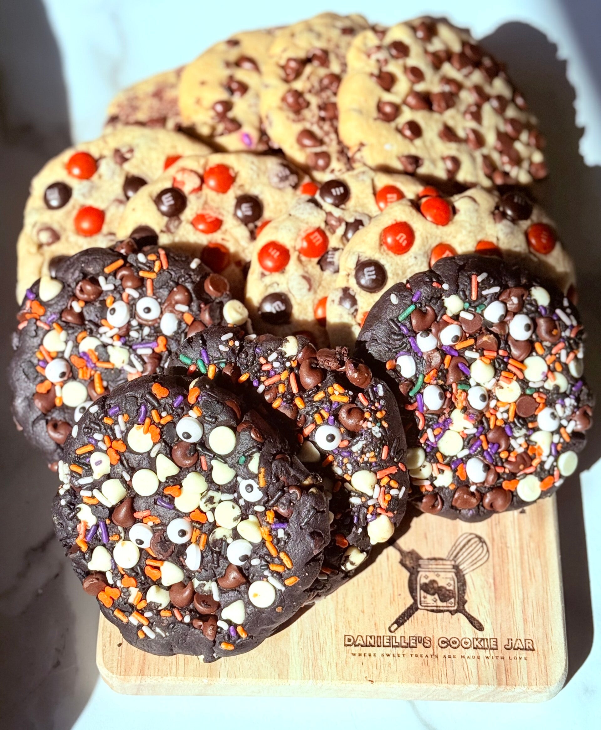 Get ready for a frightfully fun twist on a classic! This jumbo cookie is loaded with crispy-on-the-outside, melty-on-the-inside Halloween-colored M&M’s that is giving you that nostalgic M&M cookie taste with a spooky seasonal vibe. It’s thick, soft, and perfectly chewy, bursting with chocolate in every bite. Warm it up for a few seconds to unlock gooey goodness, then pair it with a cold glass of milk for a monster-sized treat that’s scary good!