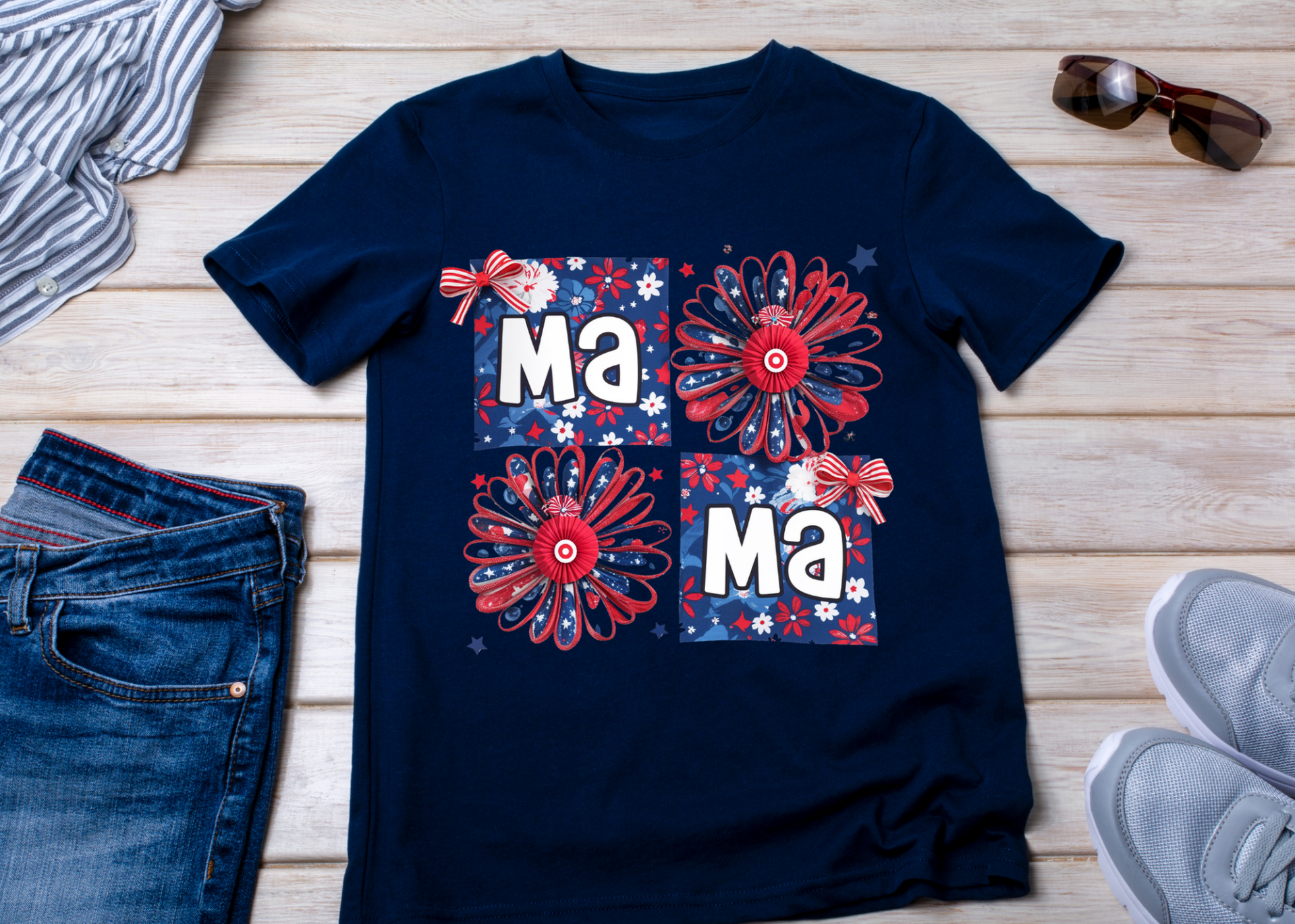 4th of July Mama-Navy tee