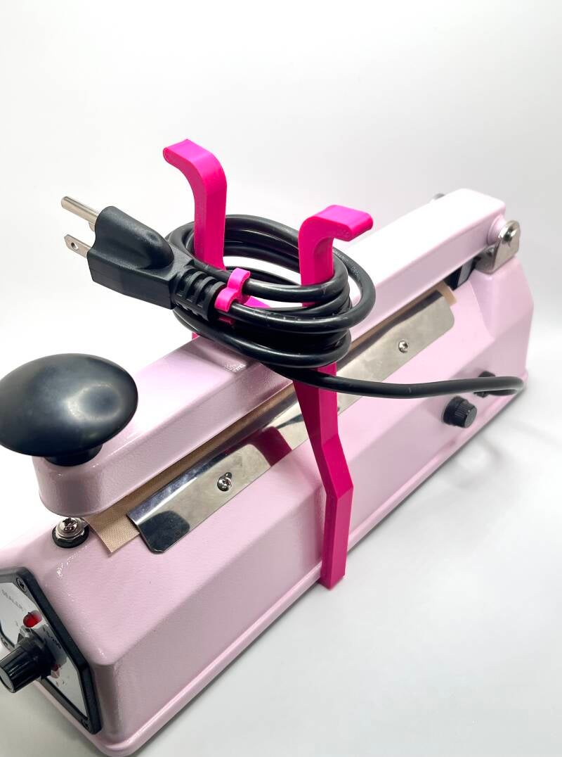 This item fits right over your heat sealer. You can wrap you cord around it for nice organization. Comes with cord Clasp.